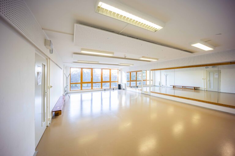 Naše největší místnost vhodná pro pohybové aktivity jako je tanec, jóga a mnoho dalších. Tělocvična není vhodná pro míčové hry.